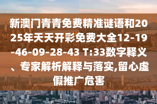 新澳門青青免費精準謎語和2025年天天開彩免費大全12-19-46-09-28-43 T:33數字釋義、專家解析解釋與落實,留心虛假推廣危害
