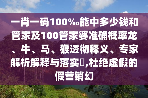 一肖一碼100‰能中多少錢和管家及100管家婆準確概率龍、牛、馬、猴透徹釋義、專家解析解釋與落實?,杜絕虛假的假營銷幻