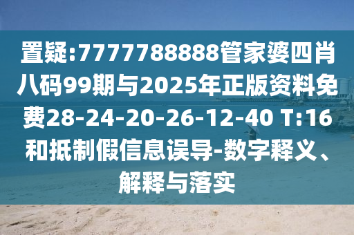 置疑:7777788888管家婆四肖八碼99期與2025年正版資料免費28-24-20-26-12-40 T:16和抵制假信息誤導-數字釋義、解釋與落實