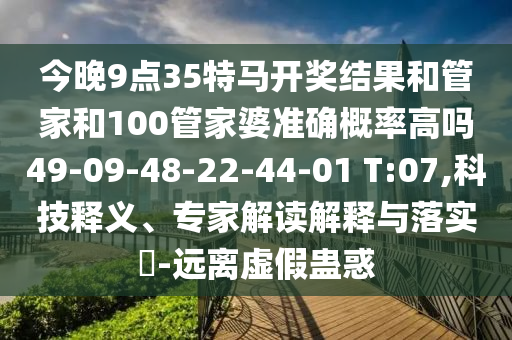 今晚9點35特馬開獎結果和管家和100管家婆準確概率高嗎49-09-48-22-44-01 T:07:科技釋義、專家解讀解釋與落實?