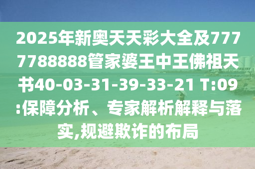 2025年新奧天天彩大全及7777788888管家婆王中王佛祖天書40-03-31-39-33-21 T:09:保障分析、專家解析解釋與落實,規避欺詐的布局