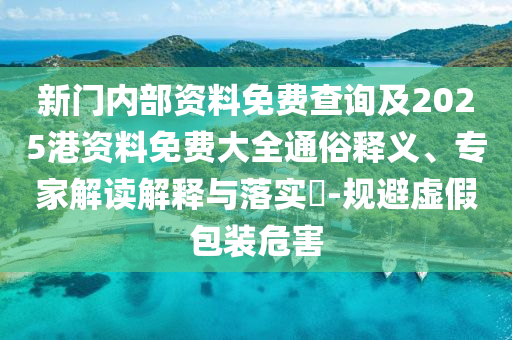 新門內部資料免費查詢及2025港資料免費大全的通俗釋義、專家解讀與落實,以及如何規避虛假宣傳的危害