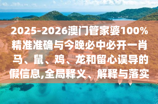 2025-2026澳門管家婆100%精準準確與今晚必中必開一肖 馬、鼠、雞、龍全局釋義、解釋與落實,留心誤導的假信息”的全面釋義、解釋與警示