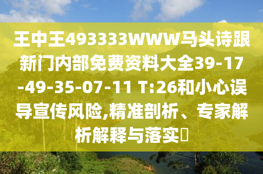 王中王493333WWW馬頭詩跟新門內部免費資料大全39-17-49-35-07-11 T:26和小心誤導宣傳風險,精準剖析、專家解析解釋與落實?