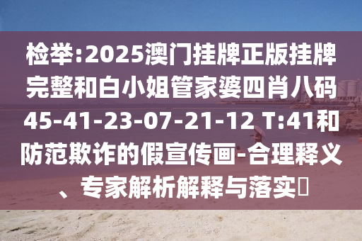 檢舉:2025澳門掛牌正版掛牌完整和白小姐管家婆四肖八碼45-41-23-07-21-12 T:41和防范欺詐的假宣傳畫-合理釋義、專家解析解釋與落實?