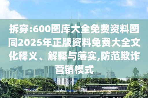 拆穿:600圖庫大全免費資料圖同2025年正版資料免費大全文化釋義、解釋與落實,防范欺詐營銷模式