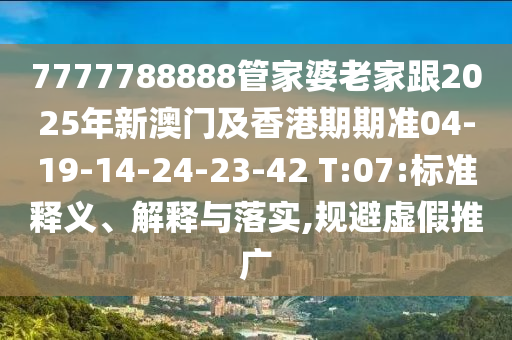 7777788888管家婆老家跟2025年新澳門及香港期期準(zhǔn)04-19-14-24-23-42 T:07的標(biāo)準(zhǔn)釋義、解釋與落實(shí)