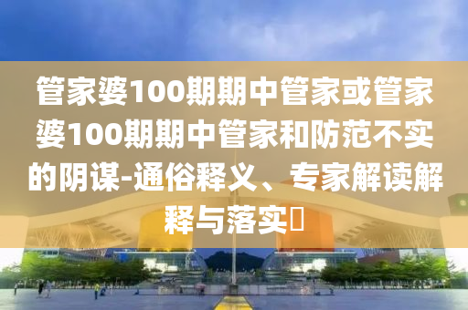 管家婆100期期中管家或管家婆100期期中管家和防范不實的陰謀-通俗釋義、專家解讀解釋與落實?