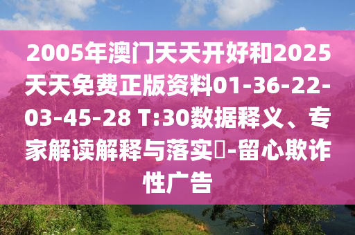 2005年澳門天天開好和2025天天免費正版資料01-36-22-03-45-28 T:30:數據釋義、專家解讀解釋與落實?