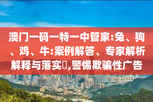 摘要:,,本文介紹了澳門一碼一特一中管家所涉及到的生肖(兔、狗、雞、牛)相關的案例解答、專家解析解釋與落實的內容。提醒廣大市民要保持警惕,防范欺騙性廣告,確保自身權益不受損害。通過專家的解析解釋,幫助市民更好地理解相關知識和技巧,做出明智的決策。