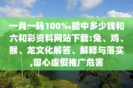 一肖一碼100‰能中多少錢和六和彩資料網站下載:兔、雞、猴、龍文化解答、解釋與落實,留心虛假推廣危害