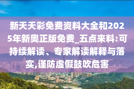 “新天天彩免費資料大全”和“2025年新奧正版免費”及“五點來料”——謹防虛假宣傳的危害,可持續解讀、專家解讀與落實