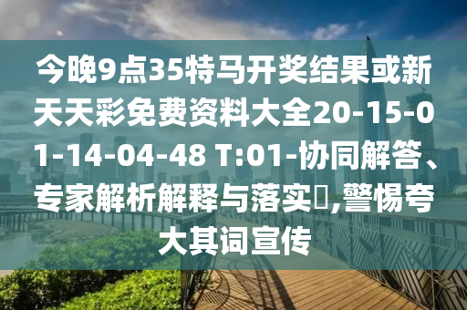 今晚9點35特馬開獎結果或新天天彩免費資料大全20-15-01-14-04-48 T:01-協同解答、專家解析解釋與落實?,警惕夸大其詞宣傳