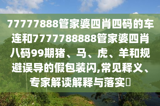 77777888管家婆四肖四碼的車連和7777788888管家婆四肖八碼99期豬、馬、虎、羊和規(guī)避誤導(dǎo)的假包裝閃,常見釋義、專家解讀解釋與落實?