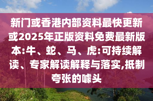 新門或香港內(nèi)部資料最快更新或2025年正版資料免費(fèi)最新版本:牛、蛇、馬、虎:可持續(xù)解讀、專家解讀解釋與落實(shí)