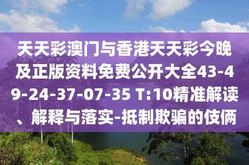 天天彩澳門與香港天天彩今晚及正版資料免費公開大全43-49-24-37-07-35 T:10精準解讀、解釋與落實-抵制欺騙的伎倆