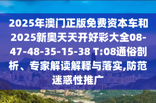 2025年澳門正版免費資本車和2025新奧天天開好彩大全08-47-48-35-15-38 T:08通俗剖析、專家解讀解釋與落實,防范迷惑性推廣