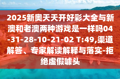 2025新奧天天開好彩大全與新澳和老澳兩種游戲是一樣嗎04-31-28-10-21-02 T:49:渠道解答、專家解讀解釋與落實(shí)