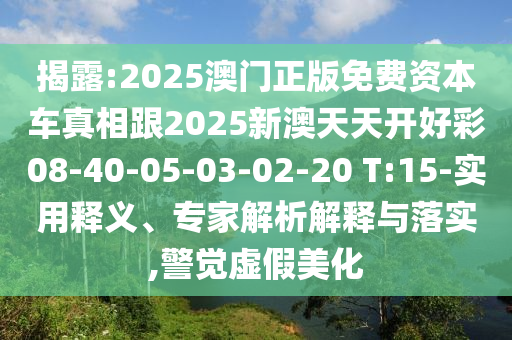2025澳門正版免費資本車真相跟2025新澳天天開好彩08-40-05-03-02-20 T:15:實用釋義、專家解析解釋與落實