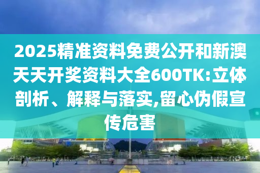 2025精準資料免費公開和新澳天天開獎資料大全600TK:立體剖析、解釋與落實,留心偽假宣傳危害