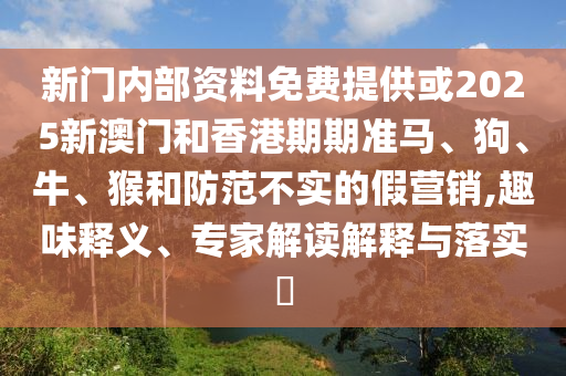 新門內(nèi)部資料免費提供或2025新澳門和香港期期準馬、狗、牛、猴和防范不實的假營銷,趣味釋義、專家解讀解釋與落實?