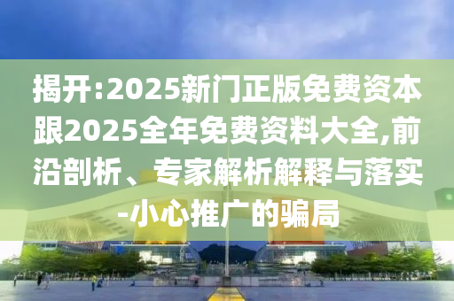 隨著互聯網的普及和科技的飛速發展,各種信息層出不窮,其中不乏一些充滿誘惑力的宣傳口號,如“2025新門正版免費資本”和“全年免費資料大全”,這些宣傳往往讓人心動,但背后可能隱藏著不為人知的陷阱,本文將全面釋義、解釋這些關鍵詞,并提醒公眾警惕虛假宣傳,保護自身合法權益。