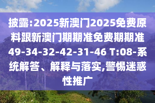 披露:2025新澳門2025免費(fèi)原料跟新澳門期期準(zhǔn)免費(fèi)期期準(zhǔn)49-34-32-42-31-46 T:08”的系統(tǒng)解答、解釋與落實(shí),以及警惕迷惑性推廣