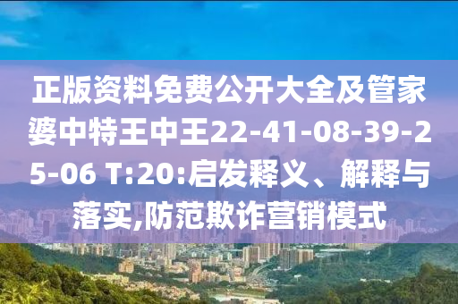 正版資料免費公開大全及管家婆中特王中王22-41-08-39-25-06 T:20:啟發釋義、解釋與落實,防范欺詐營銷模式