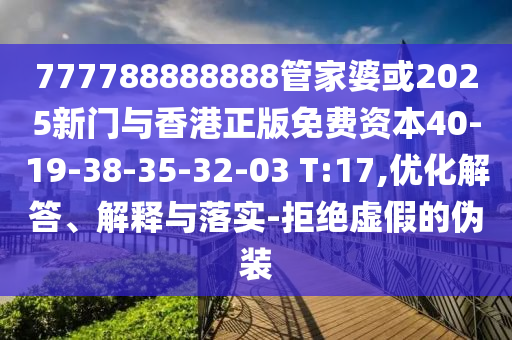 777788888888管家婆或2025新門與香港正版免費資本40-19-38-35-32-03 T:17,優(yōu)化解答、解釋與落實-拒絕虛假的偽裝