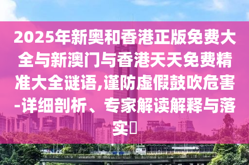 新奧和香港正版免費大全與新澳門與香港天天免費精準大全謎語”的詳細剖析、專家解讀解釋與落實,以及謹防虛假鼓吹危害的文章
