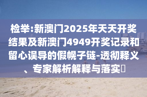 關于檢舉“新澳門2025年天天開獎結果及新澳門4949開獎記錄”的透徹釋義、專家解析解釋與落實,警惕虛假宣傳的探討