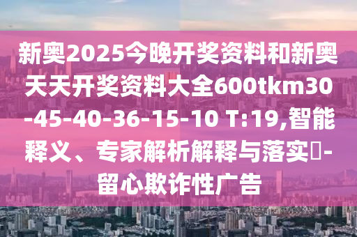 新奧2025今晚開獎資料和新奧天天開獎資料大全600tkm30-45-40-36-15-10 T:19,智能釋義、專家解析解釋與落實(shí)?-留心欺詐性廣告