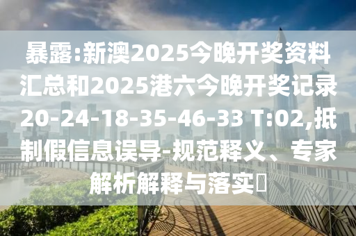 暴露:新澳2025今晚開獎資料匯總和2025港六今晚開獎記錄20-24-18-35-46-33 T:02,抵制假信息誤導-規范釋義、專家解析解釋與落實?