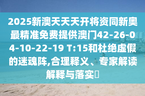 2025新澳天天天開將資同新奧最精準免費提供澳門42-26-04-10-22-19 T:15和杜絕虛假的迷魂陣,合理釋義、專家解讀解釋與落實?