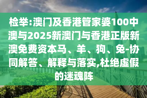 檢舉:澳門及香港管家婆100中澳與2025新澳門與香港正版新澳免費資本馬、羊、狗、兔-協同解答、解釋與落實,杜絕虛假的迷魂陣