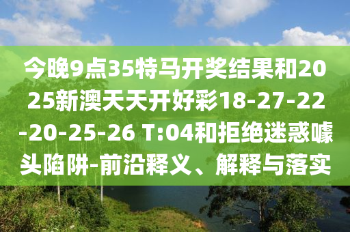 今晚9點(diǎn)35特馬開獎(jiǎng)結(jié)果和2025新澳天天開好彩18-27-22-20-25-26 T:04和拒絕迷惑噱頭陷阱-前沿釋義、解釋與落實(shí)