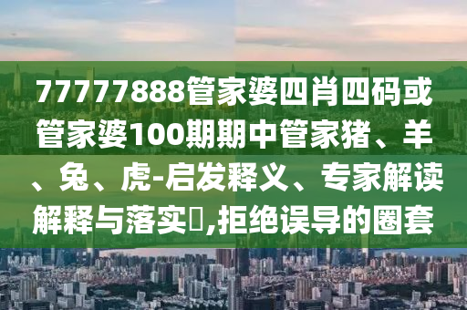 77777888管家婆四肖四碼或管家婆100期期中管家豬、羊、兔、虎-啟發釋義、專家解讀解釋與落實?,拒絕誤導的圈套