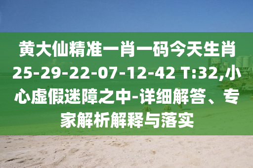 黃大仙精準一肖一碼今天生肖25-29-22-07-12-42 T:32,小心虛假迷障之中-詳細解答、專家解析解釋與落實